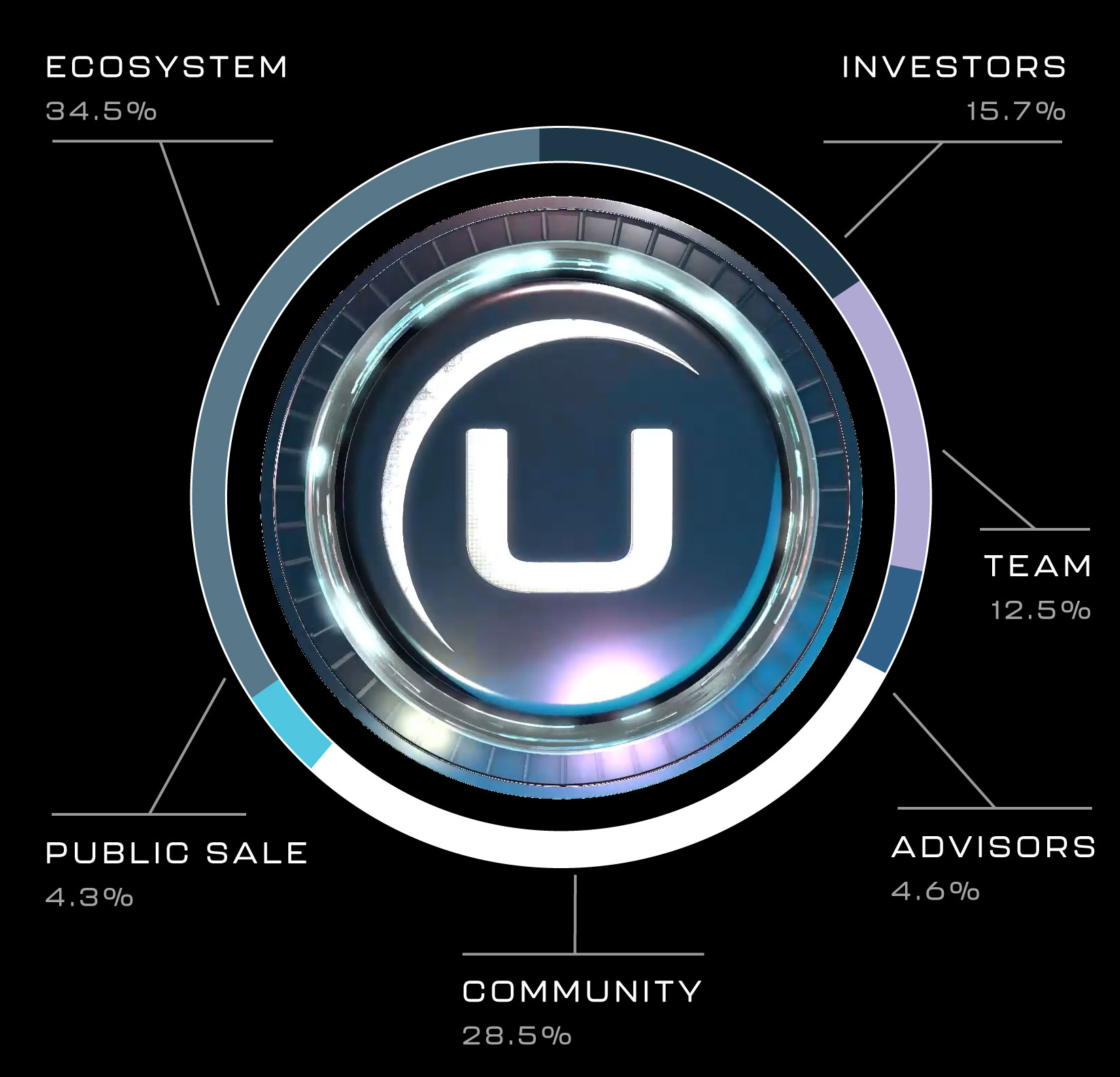 The tokenomics of UNIO are structured to align the release of tokens with anticipated expansions in our community of developer partners and gamers, as well as the operational requirements of the foundation. Over half of UNIO’s total token supply is dedicated to the community and ecosystem development. The remaining tokens are distributed among strategic investors, advisors, and team members.
