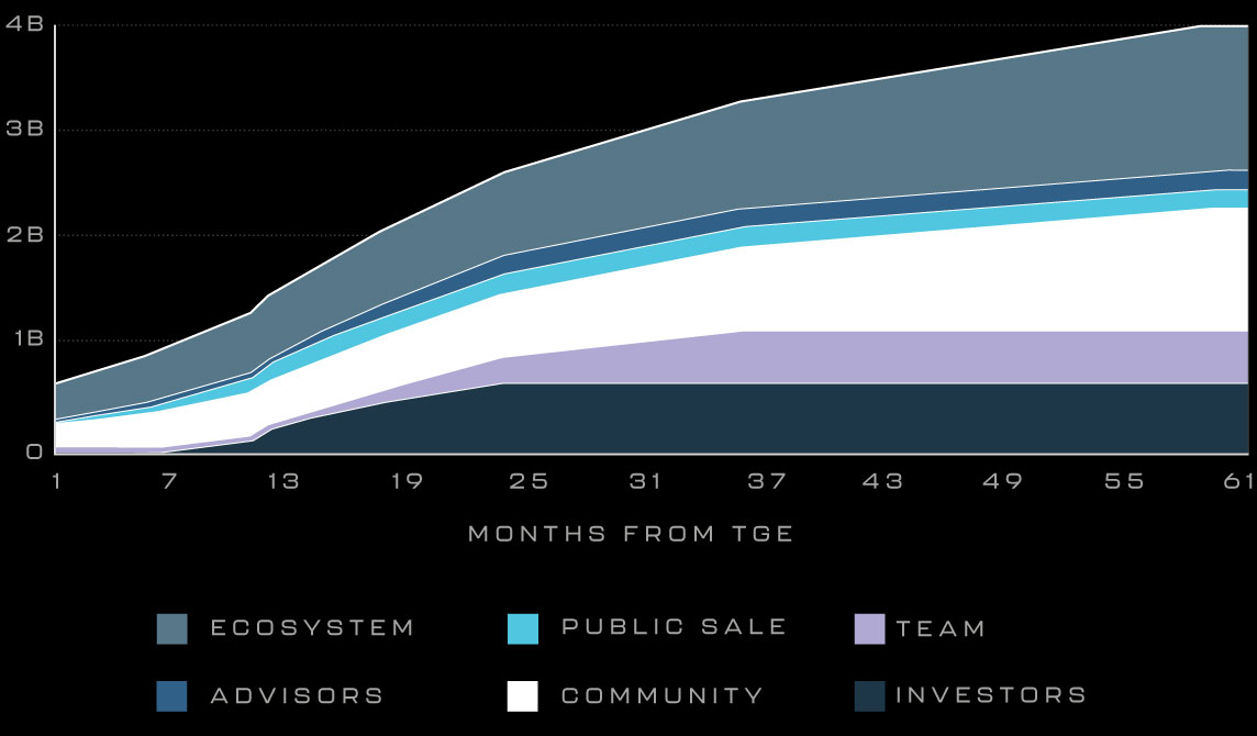 The ecosystem fund unlocks over a period of 5 years to align long term incentives and provide sustained funding as the platform matures. Although community rewards are unlocked from the outset, these rewards will be released to the community gradually, in proportion to community growth. This ensures that community rewards are consistently provided throughout the long-term operation of the platform.